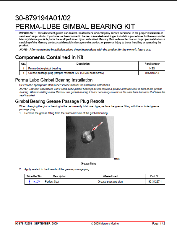 Mercury-Mercruiser 30-879194A01 Perma-Lube Gimbal Bearing Kit