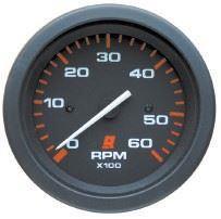 Anti-fog lens. 0-6000 RPM. 270 degree dial sweep. Black face and Black bezel;Red graduations. Outboards require a tachometer harness or ignition/chokeassembly for connection.