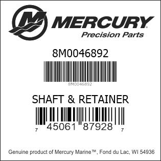 Mercury-Mercruiser 8M0046892 SHAFT AND RETAINER