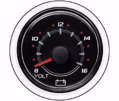 Voltage gauge (8-16V), black face, glass lens. Fits a standard 2-1/8" (52mm) diameterhole.