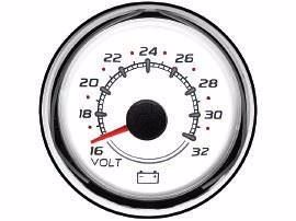 Voltage gauge (16-32V), white face, glass lens. Fits a standard 2-1/8" (52mm) diameterhole. Application of this gauge will depend on the individual engine model and itsavailable sensors.