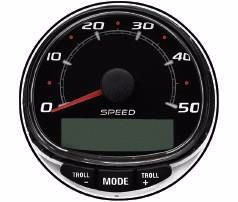 SC1000 50 MPH speed gauge, black face, glass lens. Fits 85mm diameter hole.Gauge has RPM and Speed based SmartTow. Features available on this gaugewill depend on the individual engine model and its available sensors. No Mercury logo.