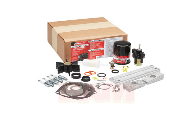 Oil filter, low & high pressure fuel filter, oil drain seal, 2-gearcase drain seals, thermostat, 2-thermostat gaskets, 4-spark plugs, water impeller kit, power trim adode and lower unit anode.