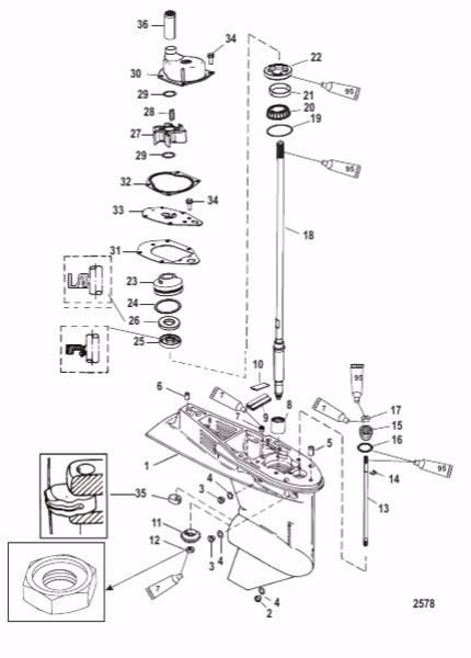 Mercury Outboard 1674-9760T44 Gear Housing Complete 40 HP L 20"