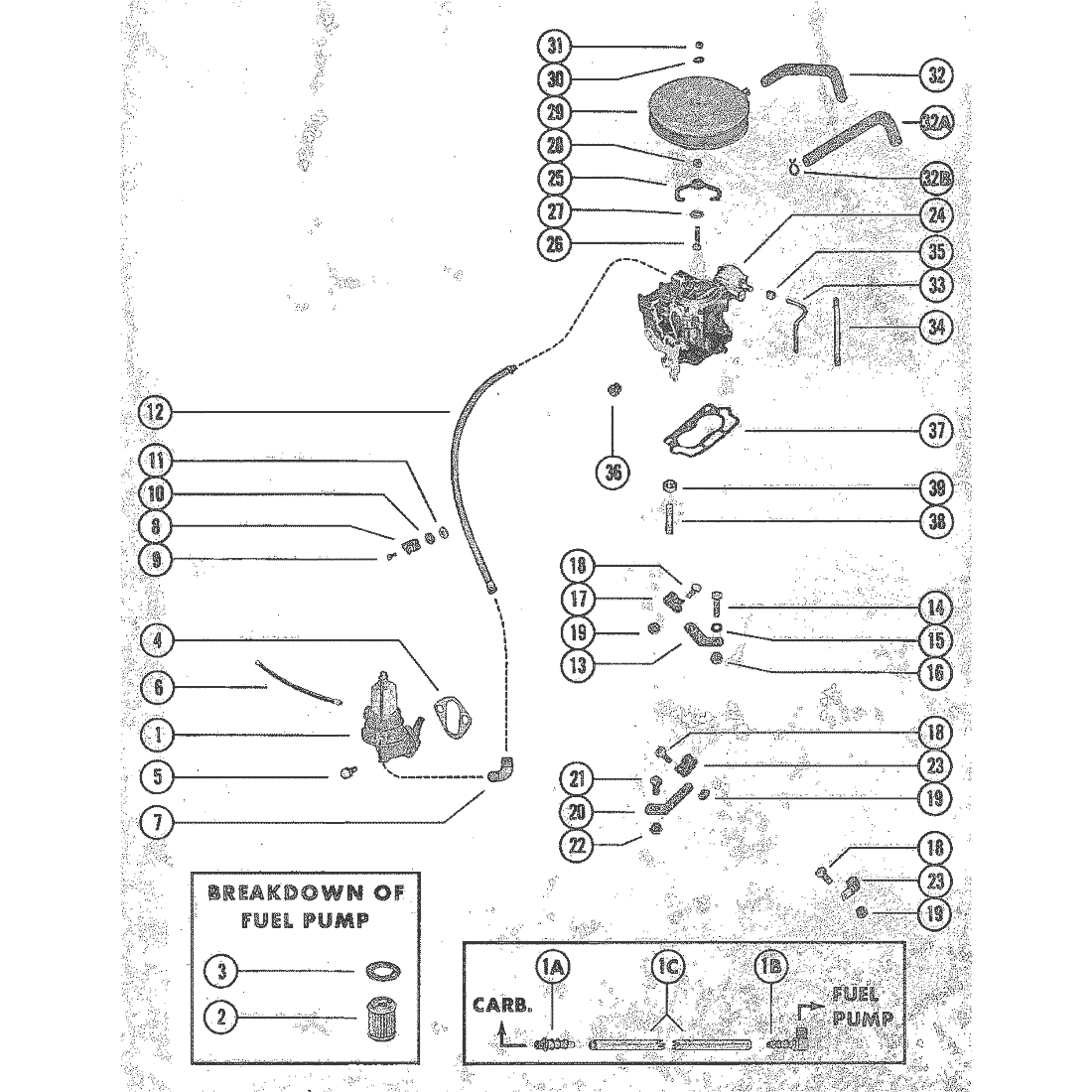 | 12 | 64296A1 | FUEL LINE, FUEL PUMP TO CARBURETOR - STEEL | NLA |