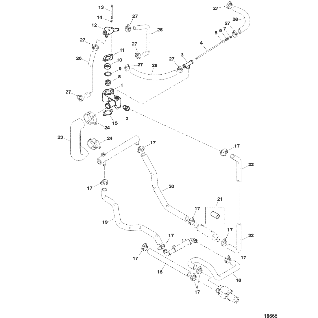 | 29 | 849937 | HOSE, Starboard Thermostat Tee To Exhaust Top | NLA |
