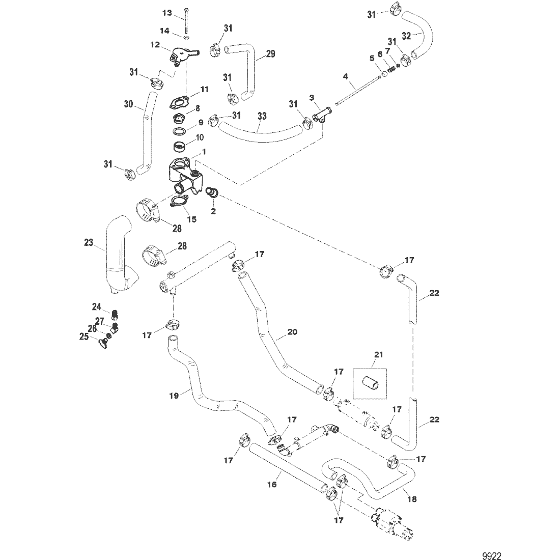 | 33 | 849937 | HOSE, Starboard - Thermostat Tee To Exhaust Top | NLA |