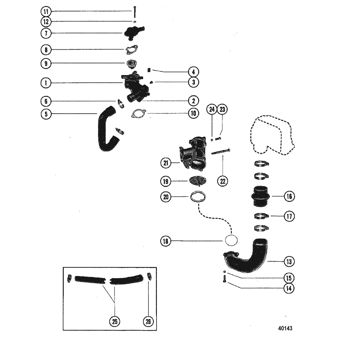 | 25 | 76847A1 | HOSE ASSEMBLY, Thermostat Housing to Transom | NLA |