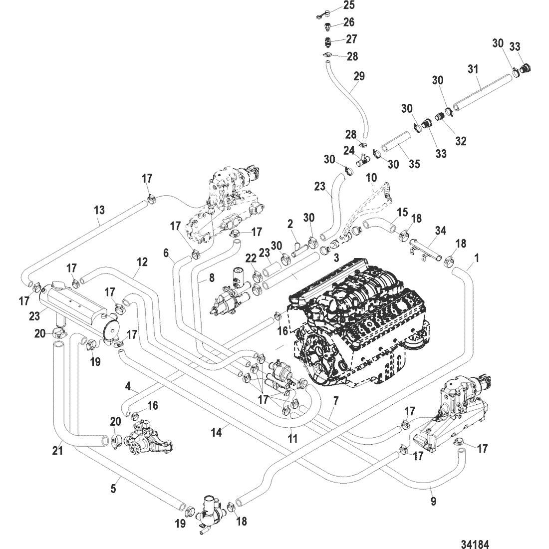 | 13 | 8M2005027 | HOSE, Heat Exchanger to Starboard Elbow | ACT |