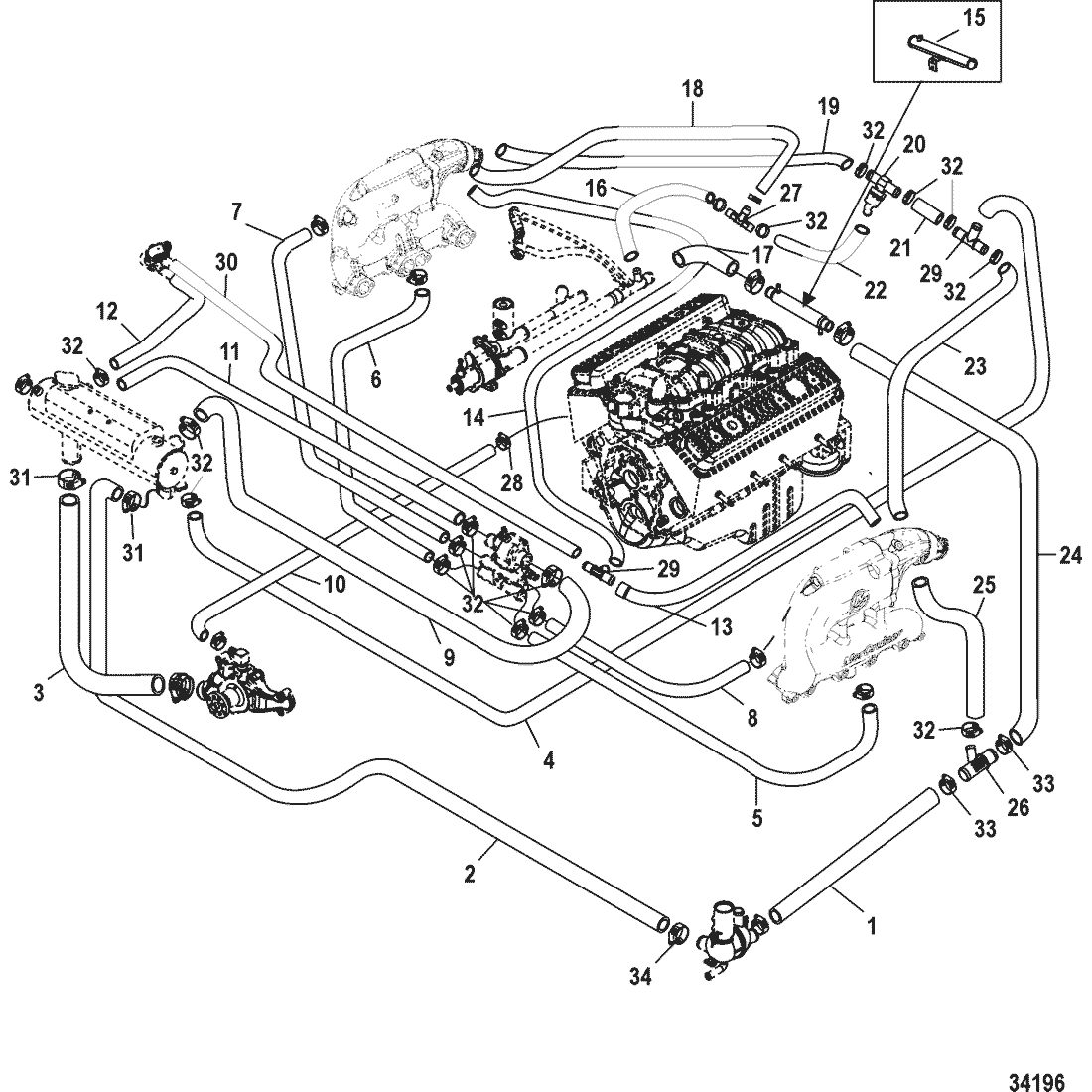 | 18 | 8M0062634 | HOSE, (44.00 Inches Bulk), Tee Fitting to Starboard Elbow | 4285069 | SS |