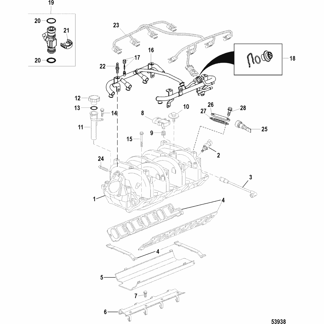 | 21 | 881695001 | RETAINER KIT, Fuel Injector | 881695 | SS |
