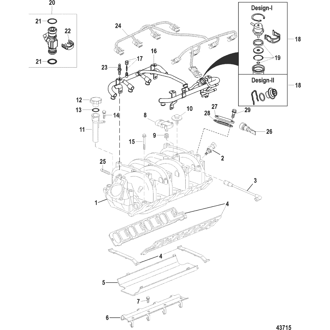 | 22 | 881695001 | RETAINER KIT, Fuel Injector | 881695 | SS |