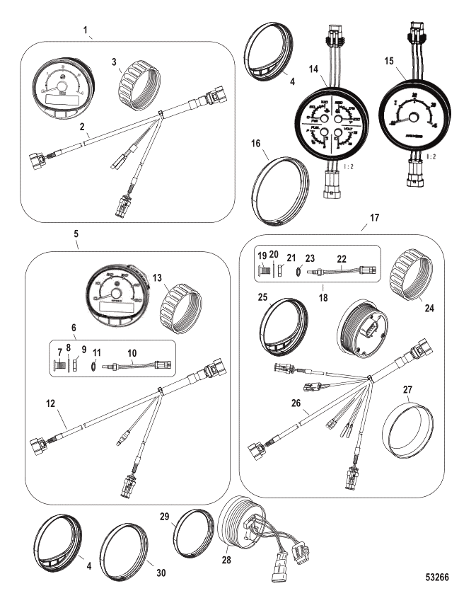 | 14 | 8M0052858 | 4 IN 1 GAUGE Temp, Pressure, Volt 12V, Fuel, Black (110 mm) | NLA |