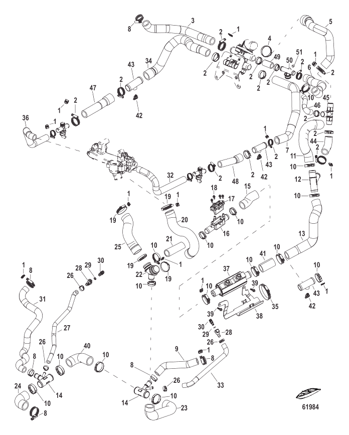 | 31 | 8M0118724 | HOSE Exhaust Manifold to Drain Fitting | 8M0035110 | SS |