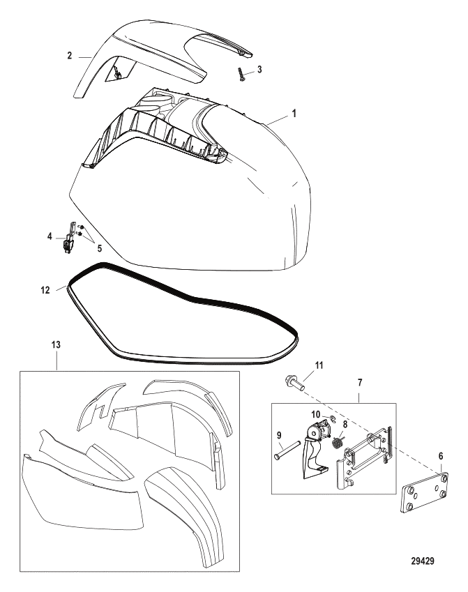 1 | 8M0113899 | TOP COWL ASSEMBLY Mercury, Without decals | 8M0075362 | SS |