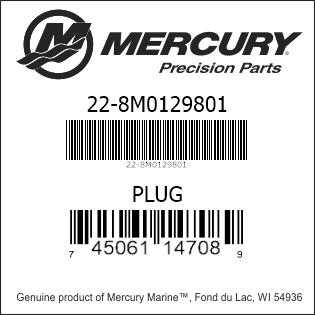 Mercury-Mercruiser 22-8M0129801 PLUG