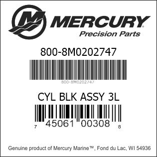 Mercury-Mercruiser 800-8M0202747 CYL BLK ASSY 3L