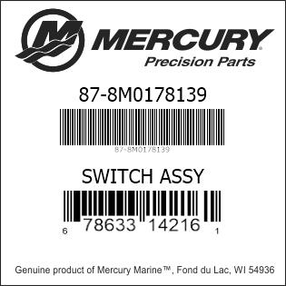 Mercury-Mercruiser 87-8M0178139 SWITCH ASSY