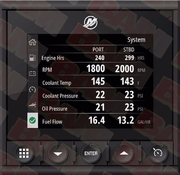 - Descriptive fault text display provides up-to-date information for 30+ engine parameters including: Fuel level & Range, Oil Temperature & Pressure, Battery Voltage, Water Depth, Genset and more.